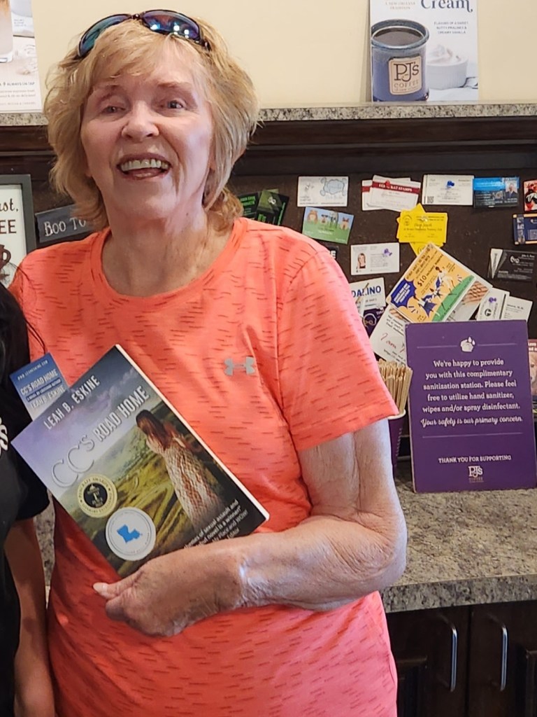 The above picture was taken a few days before my book signing for CC’S Road Home last Saturday. I’ve edited as it includes my friend Melissa who works at PJ’s Coffee and who helped me put together the event. I preferred to show my side of the photo.